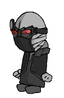 2BDamned is a character and deuteragonist of the Dedmos Adventure and tetartagonist of the Madness Combat Series. He helps Deimos escape from Purgatory during the events of DedmosRebuilt.fla.