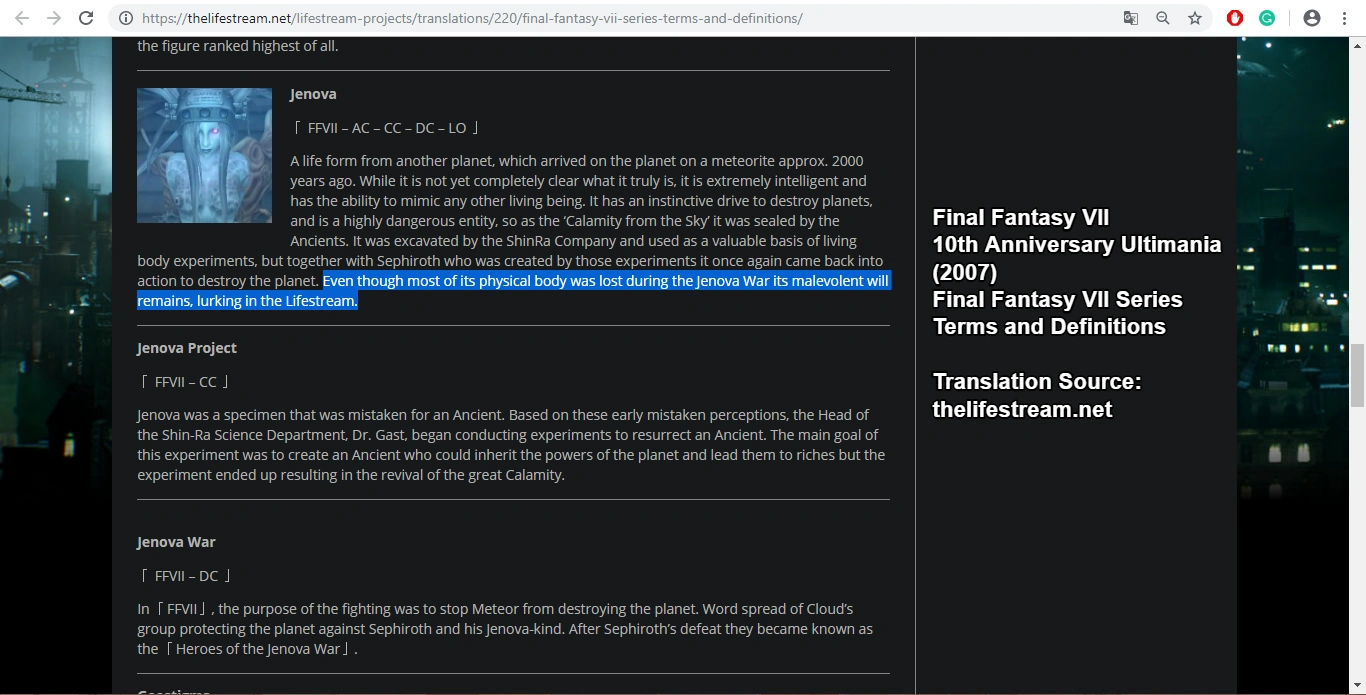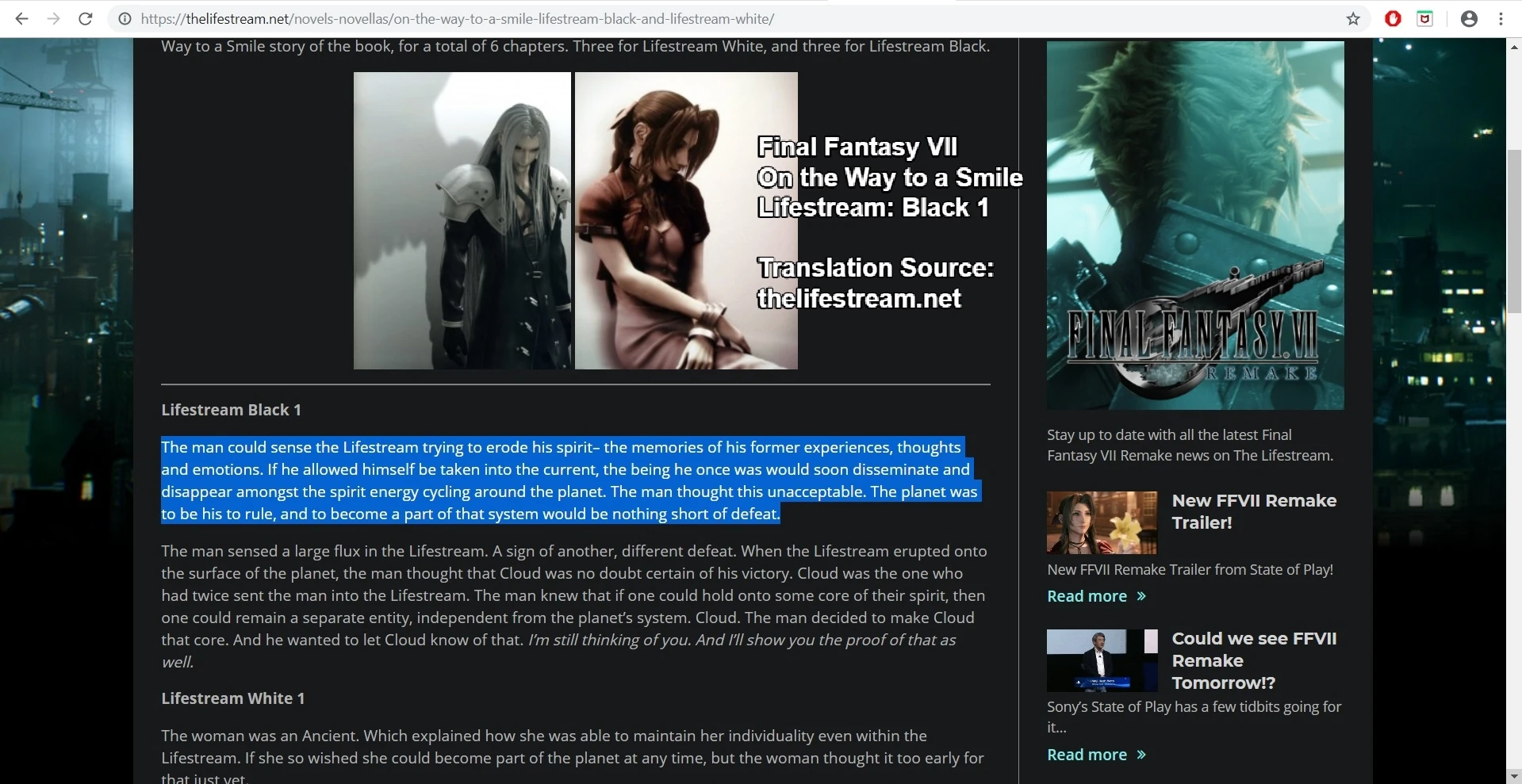 - ↑ Final Fantasy VII: On the Way to a Smile - Lifestream Black (2009)