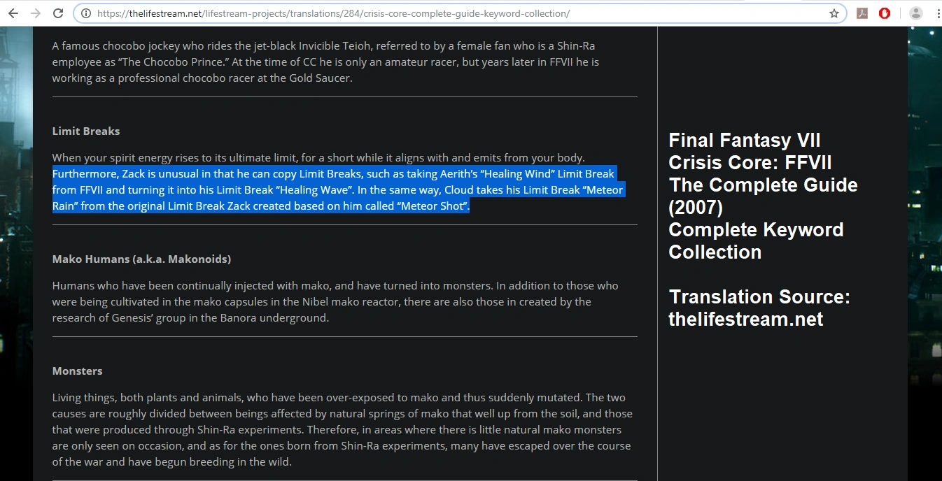 - ↑ 12.0 12.1 Crisis Core -Final Fantasy VII-: The Complete Guide (2007)