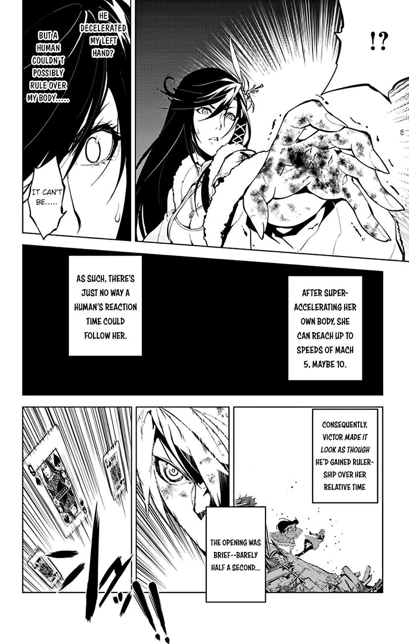 Speed: At least Subsonic+ (Faster than Mina), likely Hypersonic reactions (Caught several of Victor's Ace Shot cards, which can be shot at least at speeds of Mach 10). Hypersonic by accelerating her own body (Stated by the narration to be capable of moving at speeds of Mach 5, maybe Mach 10)
