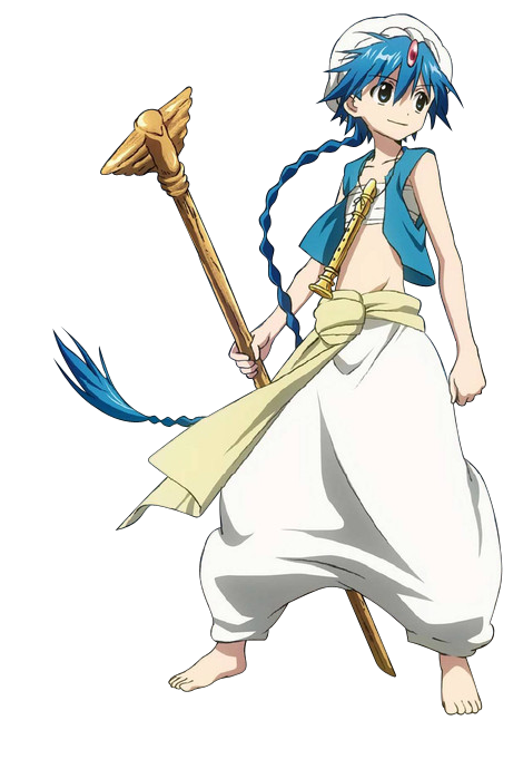 Aladdin (アラジン, Arajin) is one of the two main protagonists of the Magi series together with Alibaba Saluja. He is one of the four Magi in the current era and a Magician. He is the son of King Solomon and Queen Sheba of Alma Torran, and is commonly referred to as Solomon's proxy. Aladdin was raised by Ugo in the Sacred Place and sent to this world to fight Al-Thamen and to prevent a repeat of the tragic incident that destroyed Alma Torran. During the three years when Alibaba's consciousness was drifting in the new dimension, Aladdin and Morgiana mysteriously vanished. Later on, it is revealed that he had a confrontation with Arba and Sinbad two years ago, and the reason why they secluded themselves to the world is to avoid being found by Sinbad.