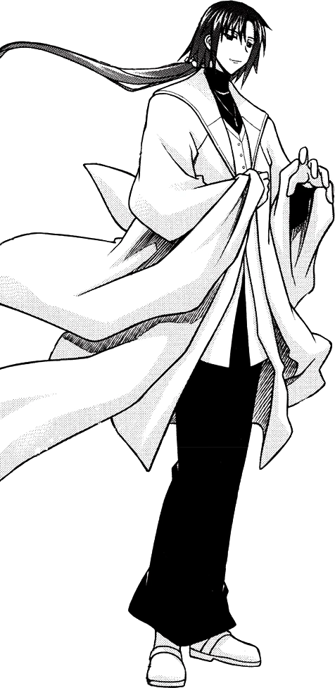 Albireo Imma, also known as Ku:Nel Sanders is one of Nagi Springfield's former companions and a member of Ala Rubra. While his past is still a mystery, he is supposedly very old. He delights in simple tricks and pranks, particularly on Evangeline. Albireo fought alongside Ala Rubra during the Great War in Magicus Mundus, and later became the Librarian of the Mahora Library Island. After sealing the Mage of the Beginning under Mahora Academy's World Tree, he has been stuck there for ten years and can only send out a replica of himself every year during the school festival with the help of the World Tree's magic. He appeared during the Mahora Festival to participate in the Mahora Martial Arts Tournament and pass a message from Nagi to his son Negi.