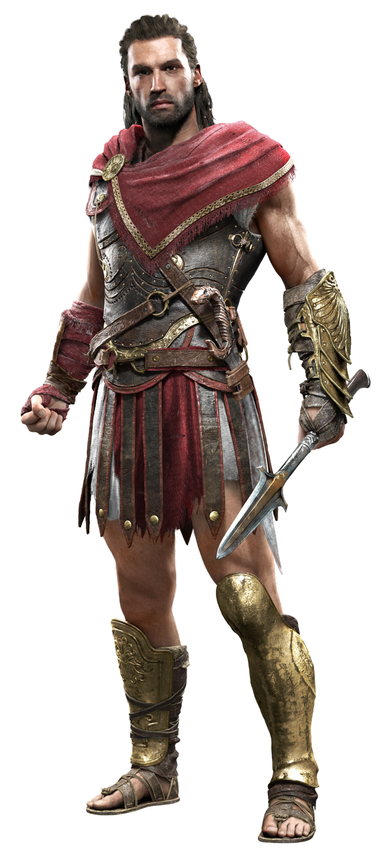 Durability: At least Small Building level+ (Possesses much higher Isu genes than usual due to being a descendant of Leonidas, who himself was a direct descendant of the Isu. Survived being thrown off a high cliff as an infant, but barely, though he was eventually able to fully recover with outside help. Was only knocked unconscious when a large tree fell on him and hit him head-first. Traded blows with Kassandra and took hits from her Spear. Can withstand shockwaves from his own sword), higher with armors and Rage Mode