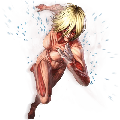 - High mobility and endurance: As the female titan, Annie has high mobility and endurance, unlike most titan shifters, who are less fast than her and tire out to the point of collapsing. During the 57th expedition, she was able to run long distances while fighting against many soldiers and Eren's Titan. Also, after escaping the Survey Corps' trap, she was able to transform for a second time without an extended recovery period.