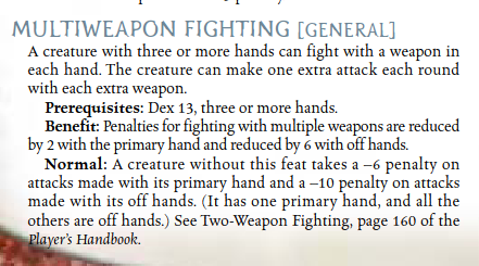 - Multiweapon Fighting:[5] Due to them possessing multiple arms the Athach has trained in striking with multiple weapons at the same time.