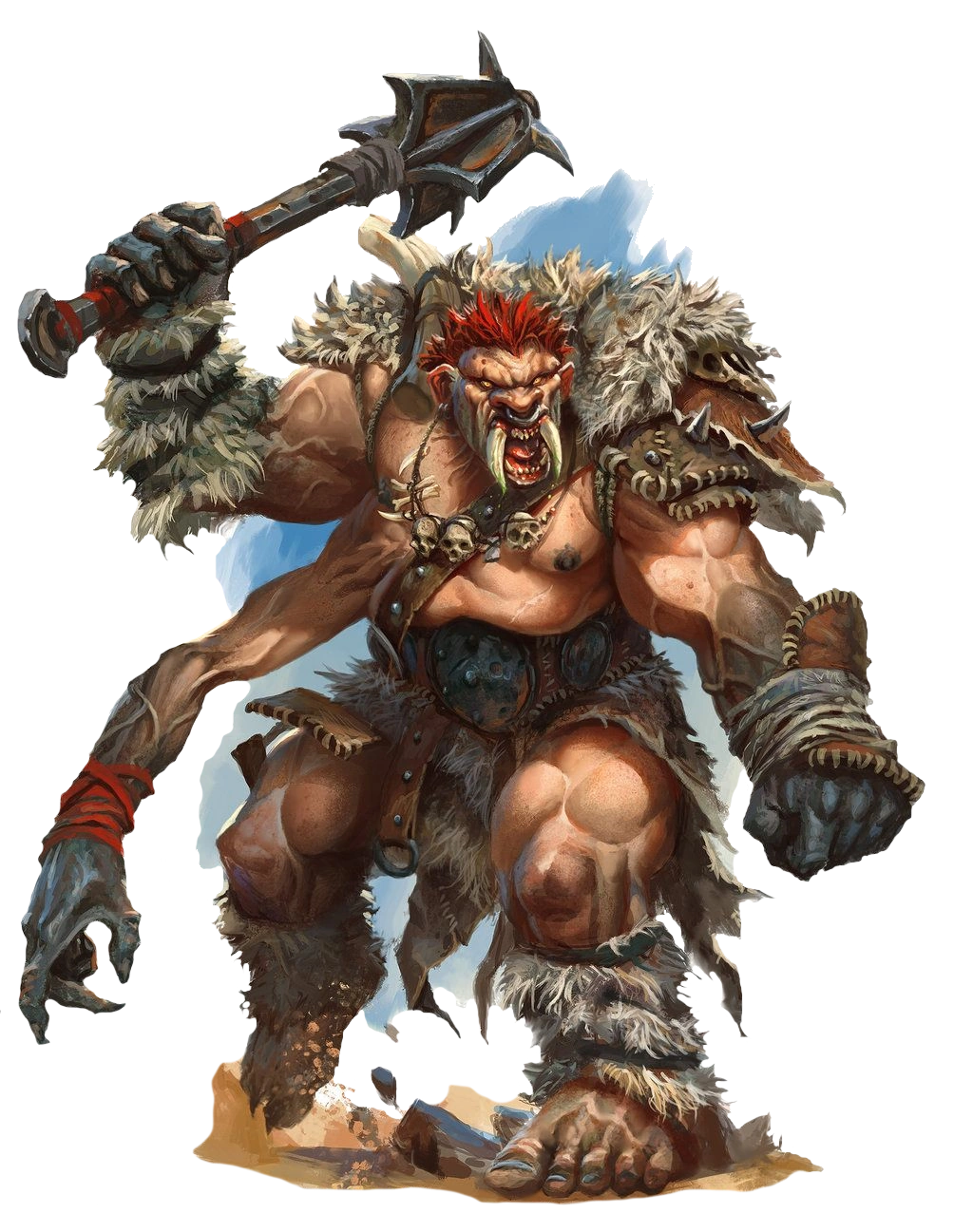 Athachs are a bizarre alteration on the typical giant form, a dull-witted, lumbering, clumsy brand of enormous humanoid whose most noticeable trait was the additional arm centered on their torso. Despite their giant-like appearance, they hated hill giants and their lesser, and outright feared and fled from higher tiers of giants.