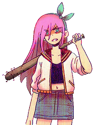 Standard Equipment: A bat with nails | A stuffed toy that she swings like a bat, as well as various other weapons, charms, snacks and toys.