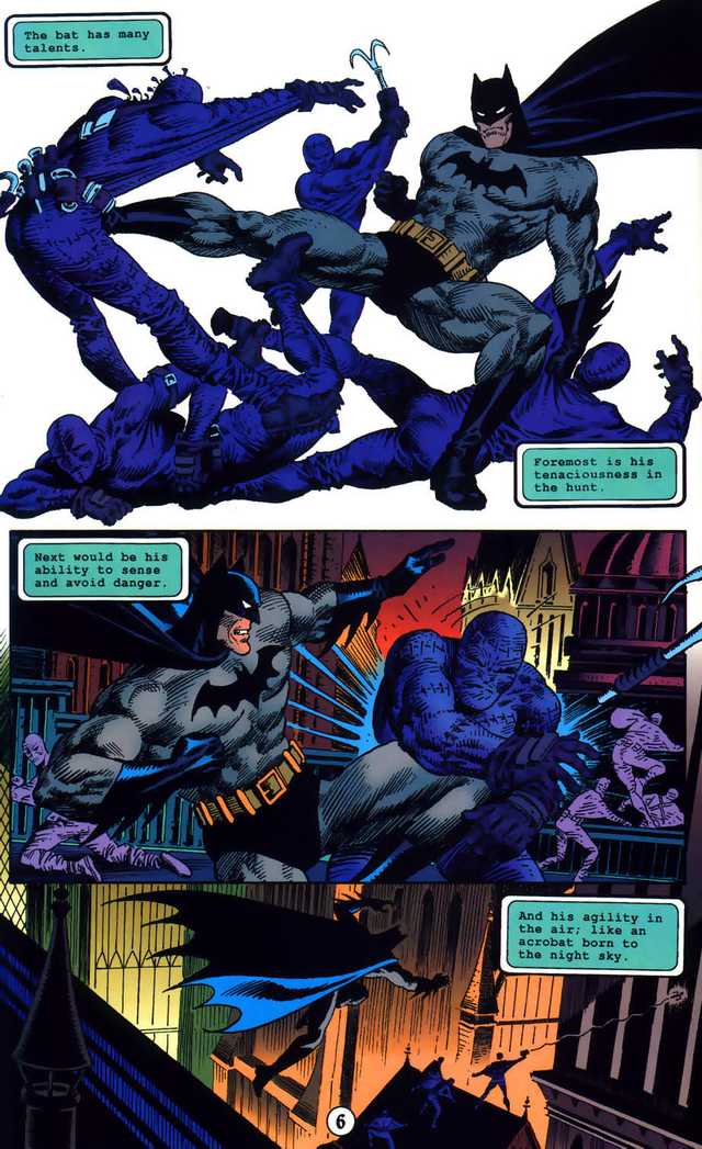 | “ | I made a promise on the grave of my parents that I would rid this city of the evil that took their lives. By day, I am Bruce Wayne, billionaire philanthropist. At night, criminals, a cowardly and superstitious lot, call me... Batman. | „ |