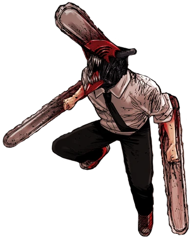 Attack Potency: Small Building level[Note 8] (Same as before. Using an axe crafted by Asa, was able to chop into multiple humans who had turned into trees without the Aging Devil's power, by tapping into an innate mechanism triggered when they reached the culmination of thought.[61] After boring a large hole into them, he proceeded to eat their internals until nothing was left.[62]), Varies; At least Multi-City Block level when transformed[Note 15] (Much stronger than his prior key's due to the success of Fami's plan of re-empowering Chainsaw Man with fear[63] which caused Chainsaw Man to become an everyday object of fear on par with sickness and aging,[64] aging being later revealed as a devil with the name of a Primal Fear.[65][66]), higher with chainsaws (Faced off against the Chainsaw Man Church Hybrid's which included a battle against the Sword, Whip and Spear Hybrids, in which he was able to hortizontally bisect through himself and Spear Man in one clean saw, in which despite only being a torso, crawled over to Spear Man and procceed to slice off his head and consume it. Followed by Whip Woman who after slicing her leg off to make her loose footing to repeatedly sawing through her body. Was able to uppercut Sword Man in the jaw, momentarily halting him, then punches through Miri, procceeding to slowly saw vertically through his torso.[67])