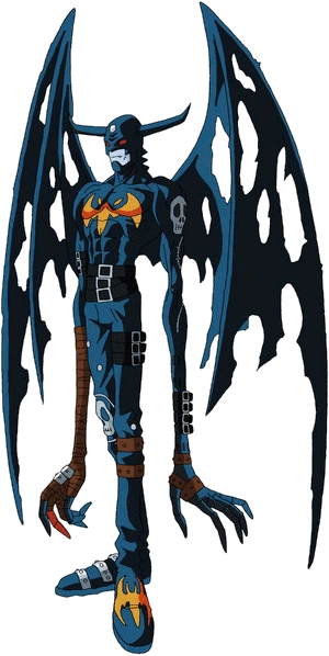 Devimon is a Fallen Angel Digimon whose body is clad in jet-black cloth. Although it was originally a shining Angemon-species Digimon, by falling to the Dark Area, which exists in a spatial distortion of the Digital World, it became a fallen angel. As proof of that, the Mark of Evil surfaced dramatically on its chest. It has a cunning and fiendish personality, but it also possesses an outstanding intellect. It is said that those who have stared into its two eyes, which shine a deep crimson, are mind-controlled and completely dominated by Devimon. In the anime, Devimon serves as the first Major Antagonist for the Chosen Children under orders from the Dark Masters.