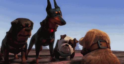 Dug, Alpha, and two other dogs (Up) pick up on a squirrel