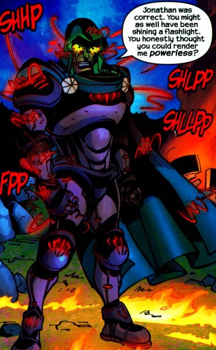 - As stated below, Doctor Strange, Doctor Druid with the power of the three Celtic War Goddesses, and Doctor Doom all combining their magics managed to overpower the magic of Doom's Shadow, an non-physical embodiment of Doom's repressed emotions and desires that was drawing his energies from "beyond the cosmos" (making his powers 4-dimensional), and then sealed him back in Doctor Doom's body.[106]