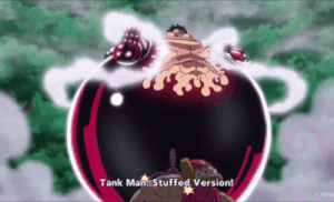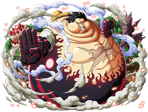 Durability: Island level+ (Took hits from a 1 Armed Biscuit Soldier), Large Island level with Armament Haki (Took many attacks[27] from Cracker's 3 Armed Biscuit Soldiers[28]), Country level with Gear 4th: Boundman (As durable as the power of his strikes), far higher with Gear 4th: Tankman Stuffed Version (Far more durable than Gear 4th: Boundman)
