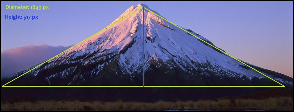 - Assuming that the mountain's height and radius are equal, the minimum values for both radius and height should be about 3682.55m.