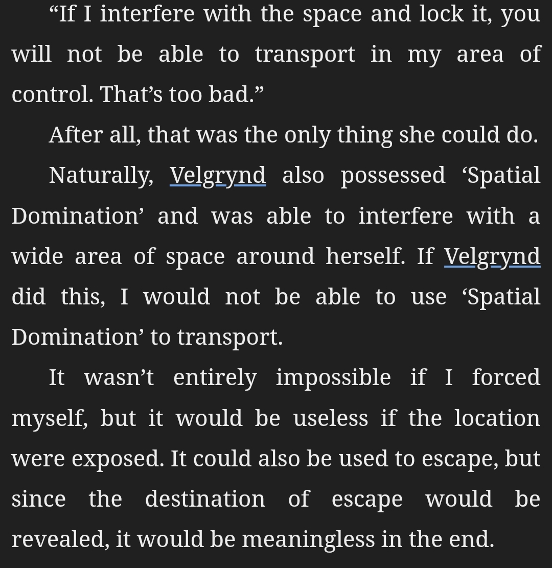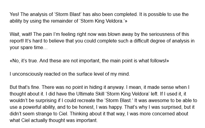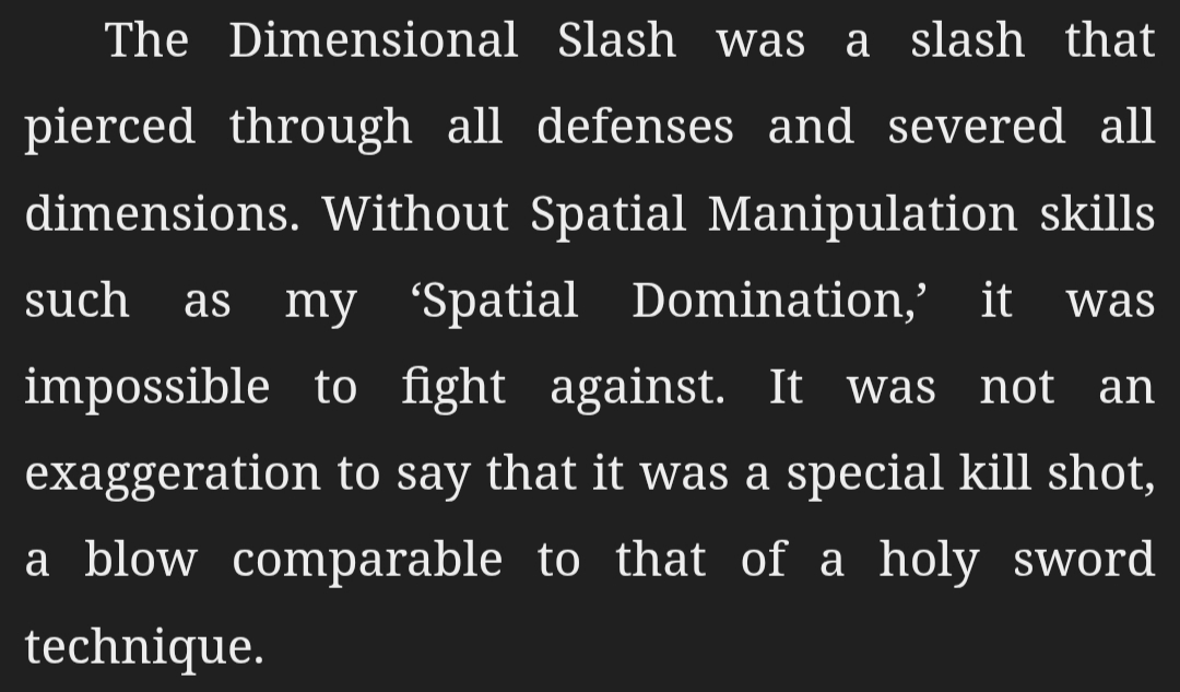 | “ | Geld, your Ravenous is a powerful unique skill, I'll grant you that. But you’re not a predator. You’re a scavenger. You can eat anything, which is incredible, but I’m adapted for catching and consuming. And that gives me the advantage. If we’re gonna keep eating at each other, I’ll be the one to gain new skills from it first. | „ |
