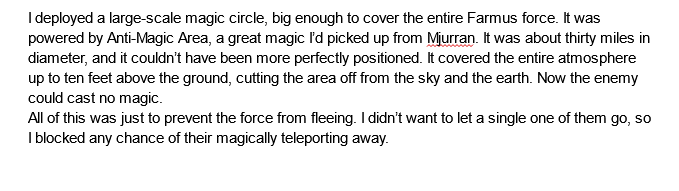 - Law Manipulation (1 Layer), Conceptual Manipulation (Type 1, 1 Layer), Reality Warping, Subjective Reality (2 Layers) & Power Nullification (Anti-Magic Area rewrites the laws of the world to create a barrier which prevents the usage of magic, it is a Great Magic that can effect Magicians and High-level Magic Born such as Demons; Magicians are greatly resistant to Magic; High Level magic-born are resistant to Magic)