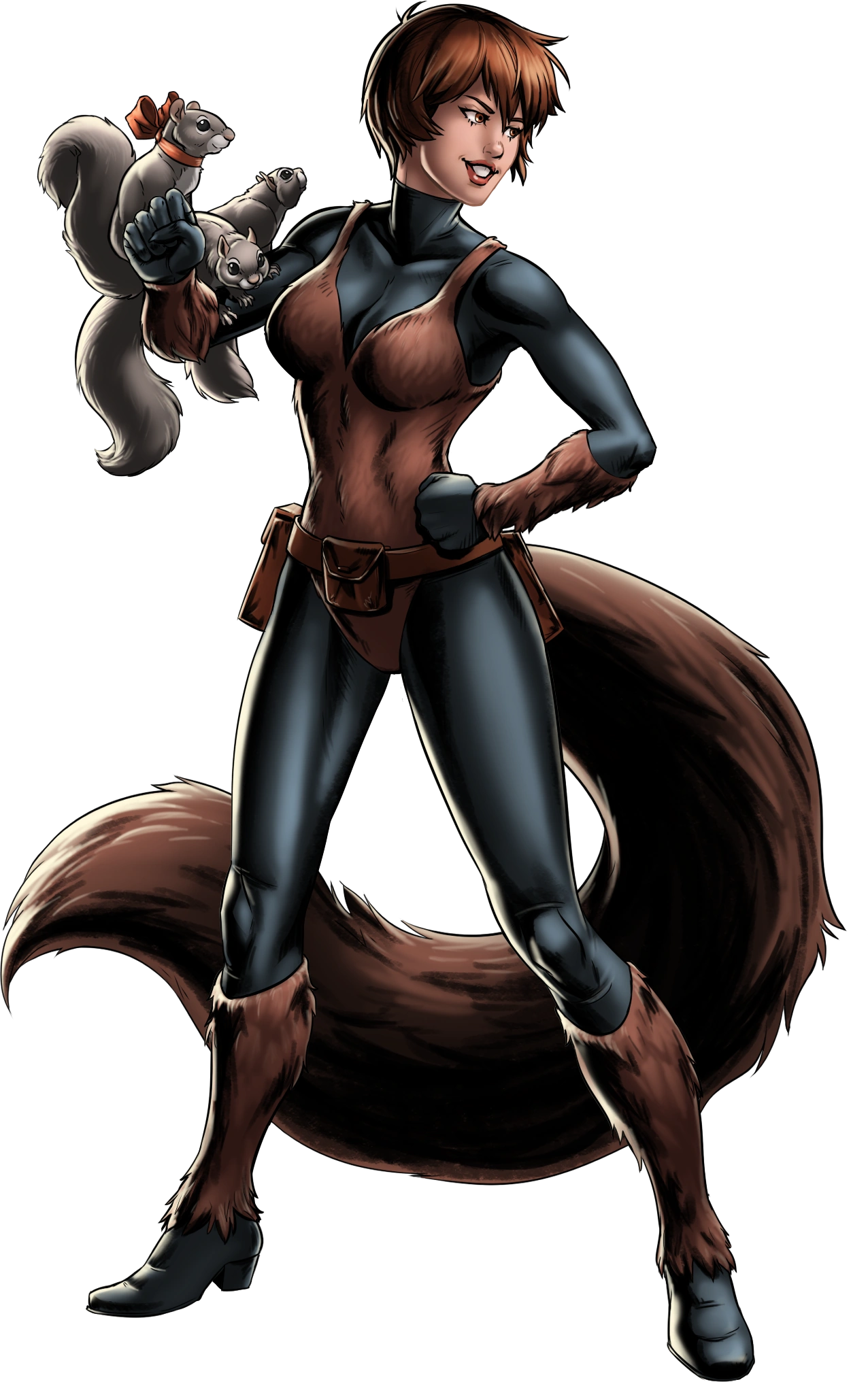 Doreen Green was born something medically and legally distinct from being a mutant with a prehensile tail and attributes akin to a squirrel. She can talk to squirrels and is often seen with a squirrel sidekick. By the time she turned 14, she was determined to use her abilities to become a super hero, adopting the alias of Squirrel Girl.
