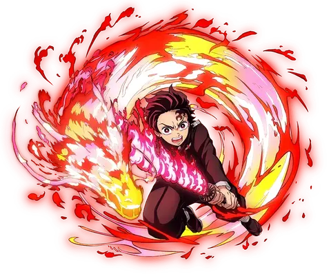 Hinokami Kagura (ヒノカミ神樂 Hinokami Kagura): Later revealed to be the Sun Breathing (日の呼吸 Hi no kokyū), the Hinokami Kagura is a Breathing Style Tanjiro learned from his father when he was a child that mimics the sun using the user's movements, techniques and abilities. This Breathing Style allows for stronger attacks and makes it feel like opponents were slashed with fire. It slows down a demon's regenerative healing factor (Demons capable of regenerating limbs at subsonic speeds could barely heal from it). There are 12 known forms created by Yoriichi Tsugikuni and later, a thirteenth one specifically created to counter Muzan Kibutsuji himself.