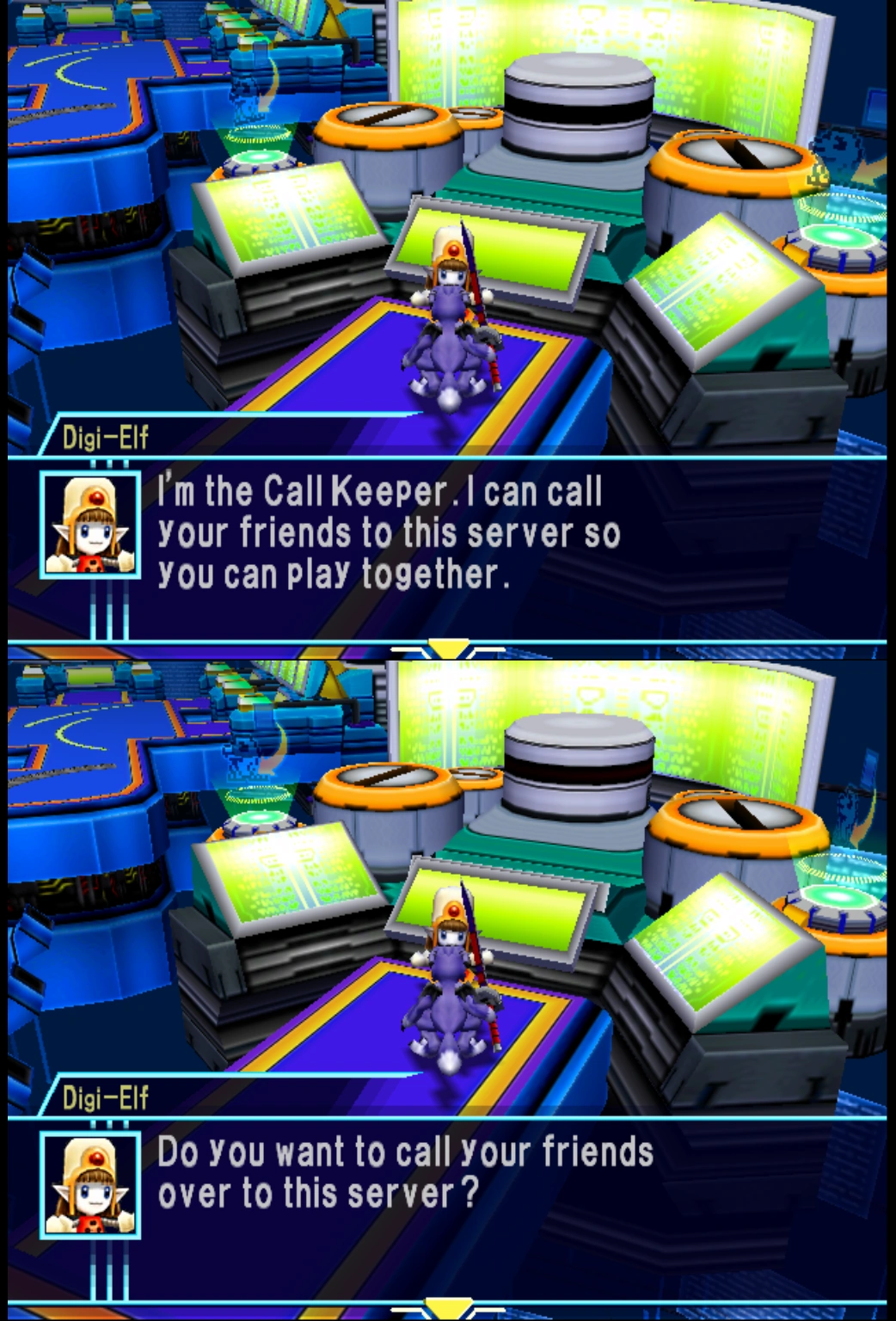 Over time the use of other servers within the franchise has become more common. In Digimon World 3 and Digimon World X the story takes place right between Servers, and although a different Server is considered to be an outside world, they are still considered as part of the Digital World. A mechanic similar to that used in Tamers. This type of concept was used again in Digimon Story where in the games Sunburst and Moonlight is mentioned that the world in which the game goes is actually only a Server. In fact, the game mentions that the Wi-Fi connection is actually connecting with other servers, which indicates that in fact each copy of the franchise's games occour in a Digital World Server. This fact has been mentioned previously in Digimon World X where a Digi-Elf mentions that the connection between copies of the game is connection between Servers. There are still other Servers known as "Training BOX" (「育成 BOX」), they are accessed by Addresses connected to each V-Pet that exists, each one is a Server that exists among the layers of the Digital World. These "Training Boxes" are normally isolated spaces that are used to train the Digimon through the "Digital Devices" used by humans. In addition in Digital Monsters Ver.S that works with the concepts of Digital Monster, a primitive type of "Digital Device", there are a place called "Cosmos" (コ ス モ) where we can see galaxies and several stars (Yes, even a simple Address for the Digital Device already contains several stars and galaxies).