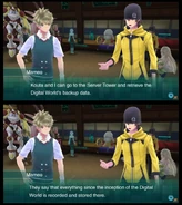 As you may have understood, Programming is very much equivalent to the Laws of Physics. One thing that Digital Beings can do is change that programming. Programmers through a programming language are able to modify computers, this also occurs in Digimon where through the programming language many beings are capable of great feats. One of the most classic examples of this is the character Analogman, who in games like Digimon: Digital Card Battle manipulates the programming of the Digital World and literally controls everything. Some examples of this is that it prevents the Player from performing Save, prevents the player from moving freely, changes the draw system of the game to always get good cards, causes the player to take bad cards and others things. Other examples include Koushiro using a code to power Tentomon and causing him to evolve into Kabuterimon.