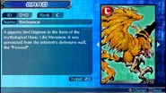 A different Firewall was created by Barbamon in Digimon Next. Using his powers he has created a Firewall around System World that destroys all who are enemies of Barbamon, whether they are inside or those outside. This Firewall is considered impregnable defense system and while its flames exist the castle is practically impenetrable. The Digimon powers RizeGreymon and MachGaogamon (Illegals, whose power can even overcome Ultimates) are useless because they are always nullified by the Firewall. Murmukusmon explains that the Firewall created by Barbamon was created by his enormous power of the dark, something that he can control. This is interesting to note because we know that Barbamon uses the Dark Area's evil energies in his attacks and that Murmukusmon is known to also command the flames of hell (That is the Dark Area) leading to eternal suffering even after death. This may indicate that the Firewall crafted by Barbamon is actually something that stems from the eternal flames of the Dark Area, which may explain it to be "inviolable" to most Digimon. According to Murmukusmon the concentrated power of this Firewall is able to erase Shou, and possibly the rest of the World System, 100 times and there would still be power for much more.