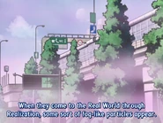 When Digimon come to the Real World through Realization, some sort of fog-like particles appear. These particles are a pattern that occour during the Realization process, when a Digimon materializes from the Digital World/Network. This fog acts on certain electromagnetic waves that encompass the Real World, and follow the Digimon data, rapidly condensing the particles in the ar through chemical reactions to produce a pseudo-protein. Once that pseudo-protein stabilizes, a Digimon obtains a physical body in the Real World. However, its molecular composition is highly unstable and fragile.