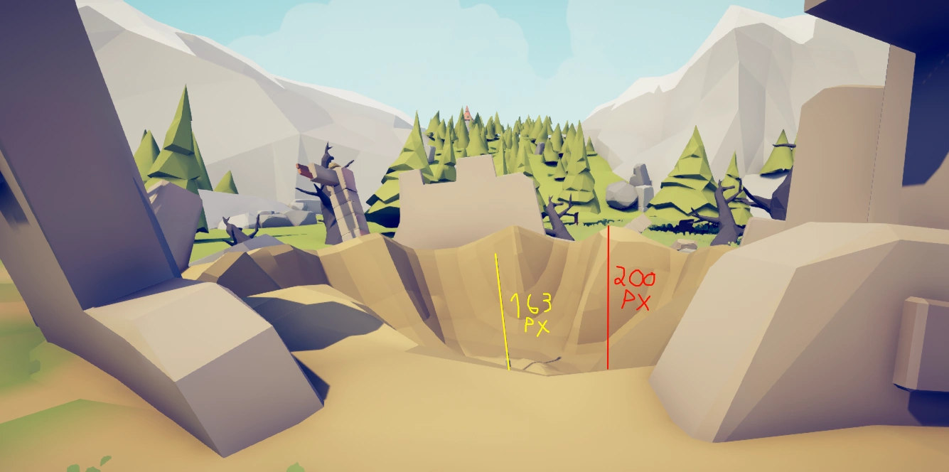 Now we also have a small building(castle) on top of that, so here are the height messurements, for the lenght we will just guess It was a square of the same size as the crater since It possible was a bit larger then the crater considering how far apart the It's debries are from the hole It self. Here are the messurements