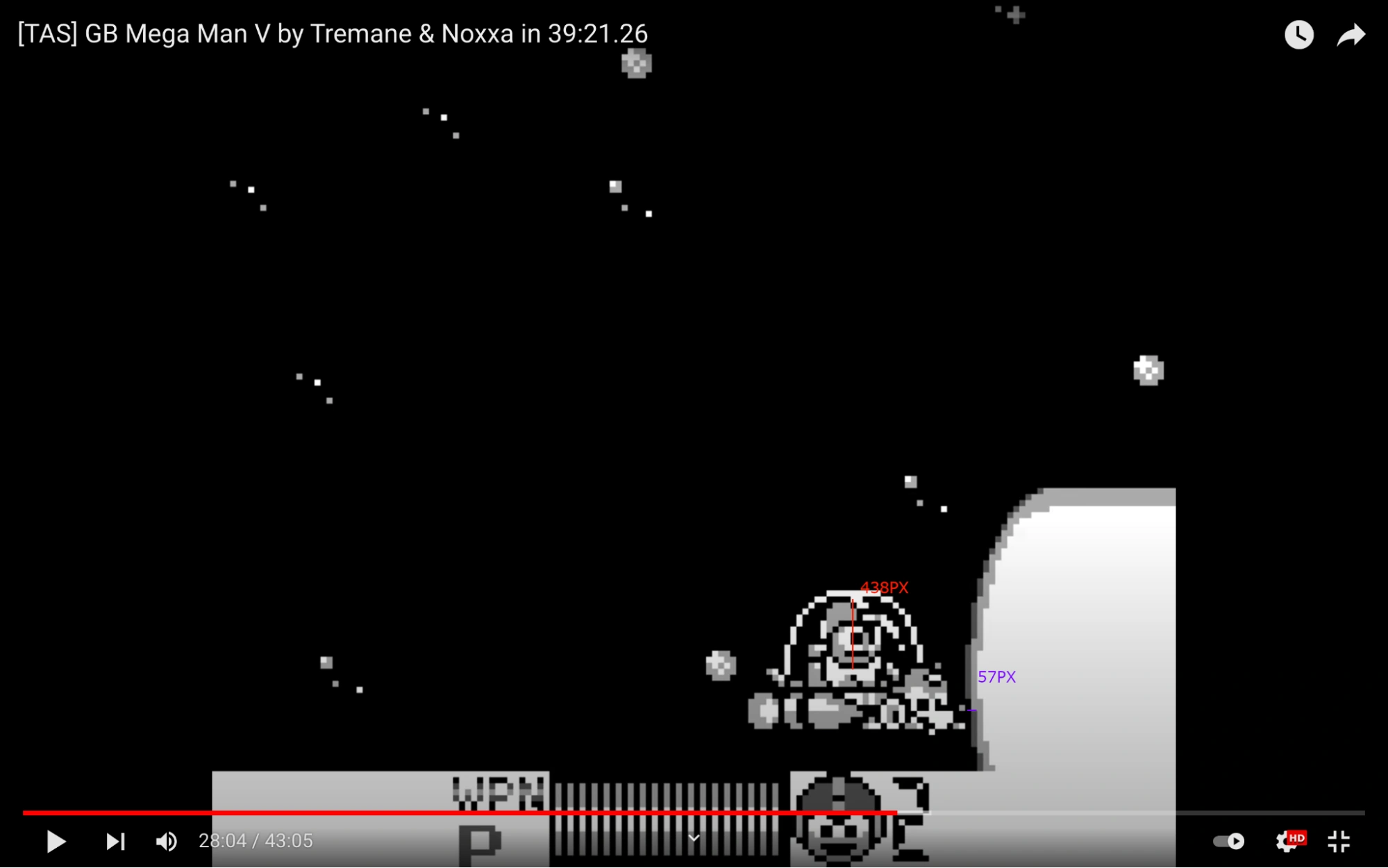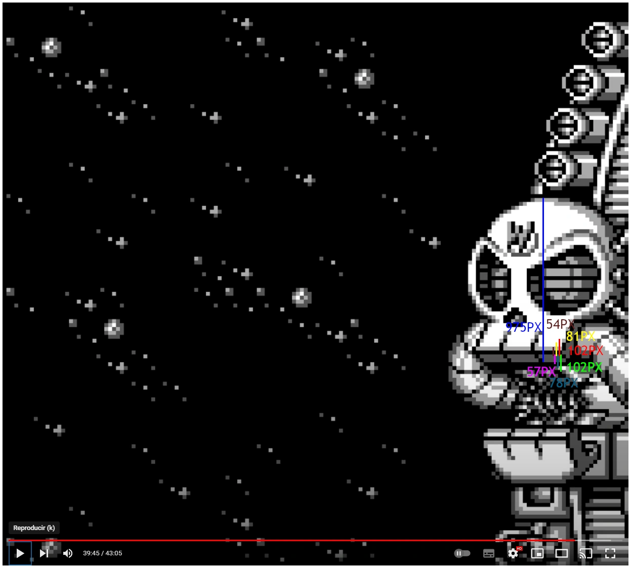 I shall now calculate the shaking of the entire Wily Star. To explain what I'm about to do here: as we can see, the distance the battle planet moves relative to its rest position varies quite a bit with its shaking. So what I'm gonna do is find the average distance the Wily Star moved during every motion and then using the average time of each interval, divide the average distance to find average speed. Mass used for both KE is the mass of the entire Wily Star.