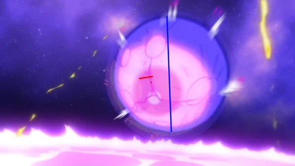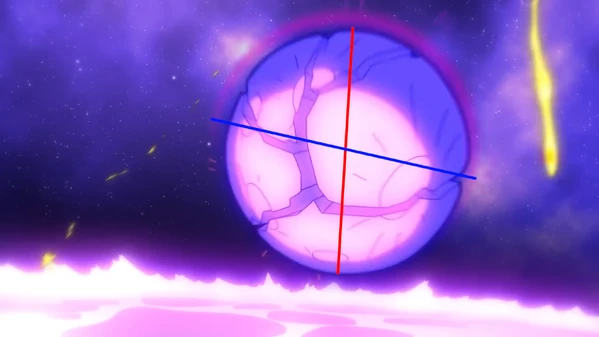 Stolas sits on top of a moon which explodes in a shockwave which tears it apart, unfazed by the force of it.